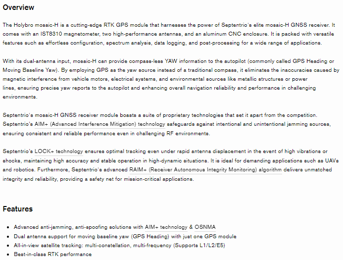 Holybro H-RTK Mosaic-H Dual Antenna Heading