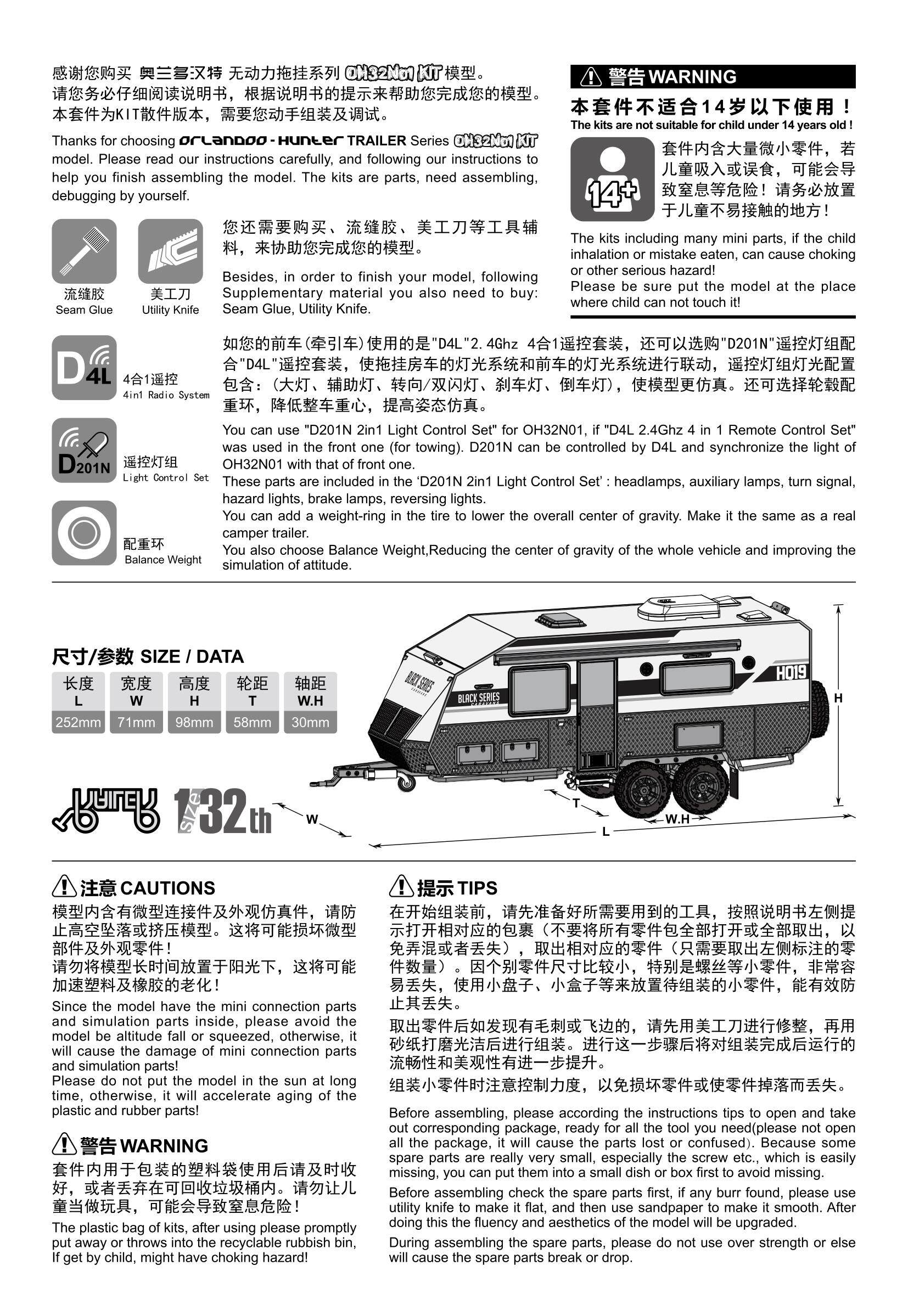 Orlando Hunter OH32N01 RC Trailer Camper RV Assembly KIT