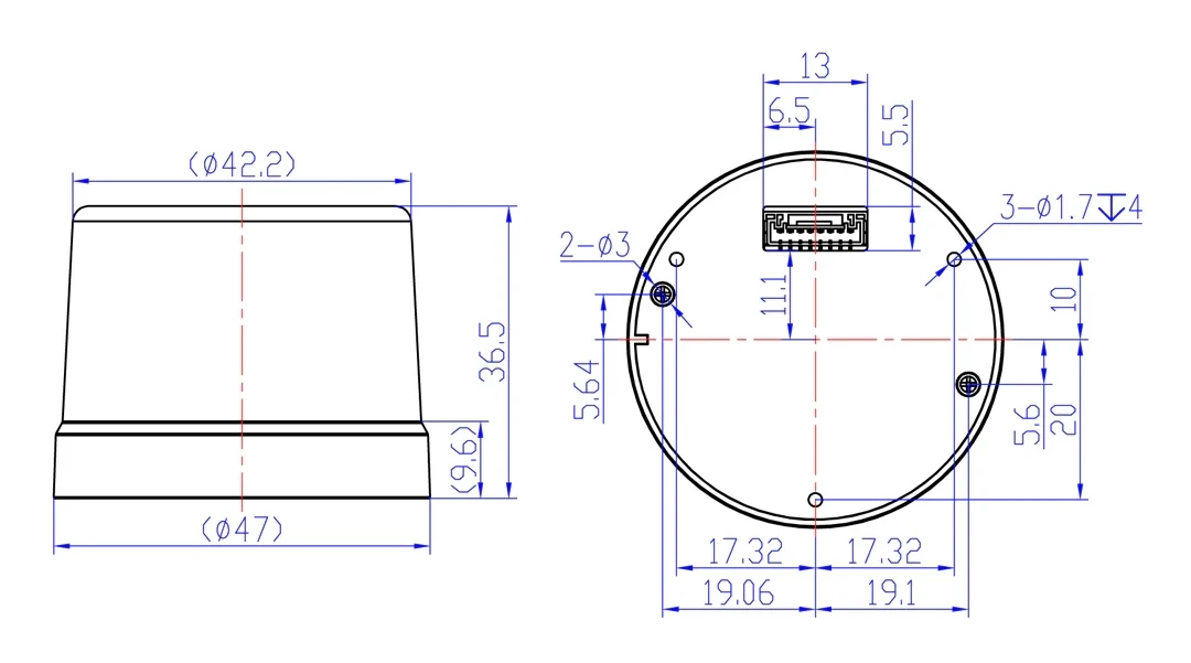 1. All satellites at ≥-130dBm 2. CEP, 50%, 24 hours static, ≥-130dBm, > 8SVs 3. Based on 30km, the accuracy error increases by 1cm every 10km from the base station 4. Assuming Airborne < 4 g platform |