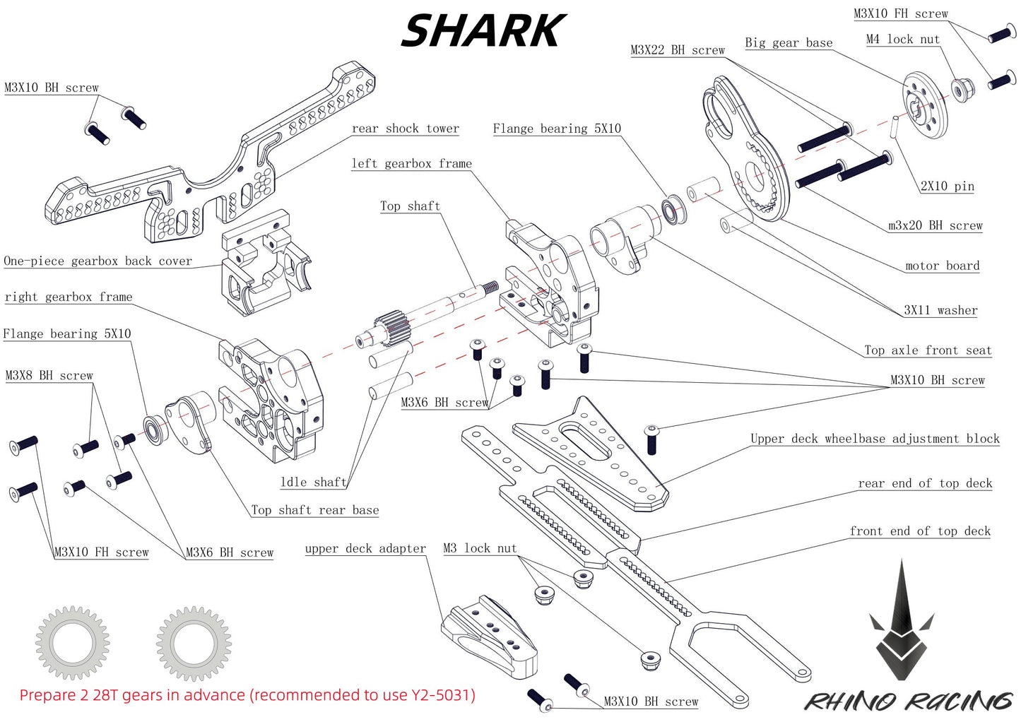 RHINO RACING YOKOMO YD2 1/10 rc drift car aluminum alloy op parts