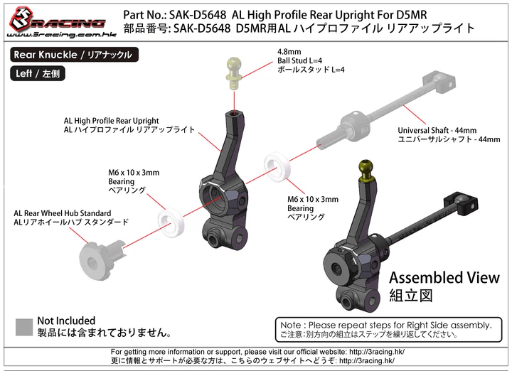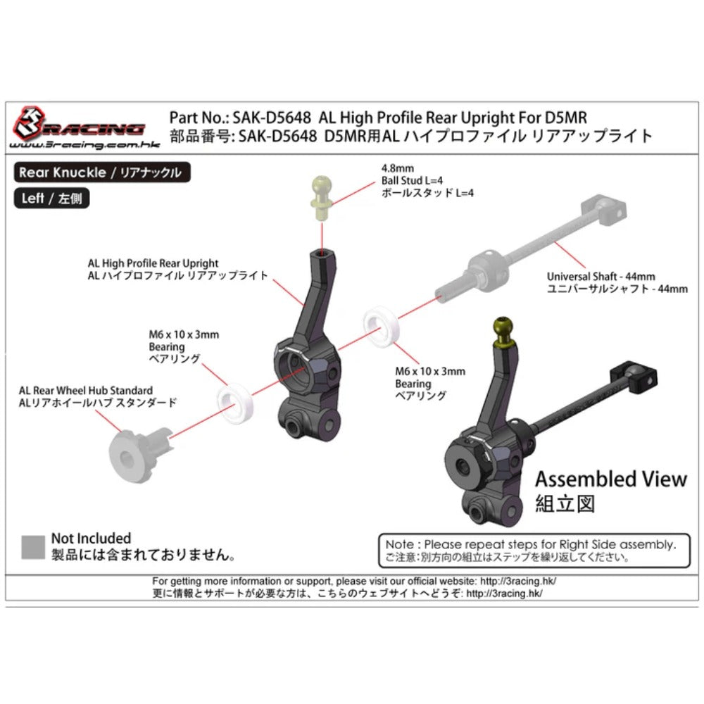 3RACING D5 D5648 Rc Car Metal Rear Wheel Cup Op Part